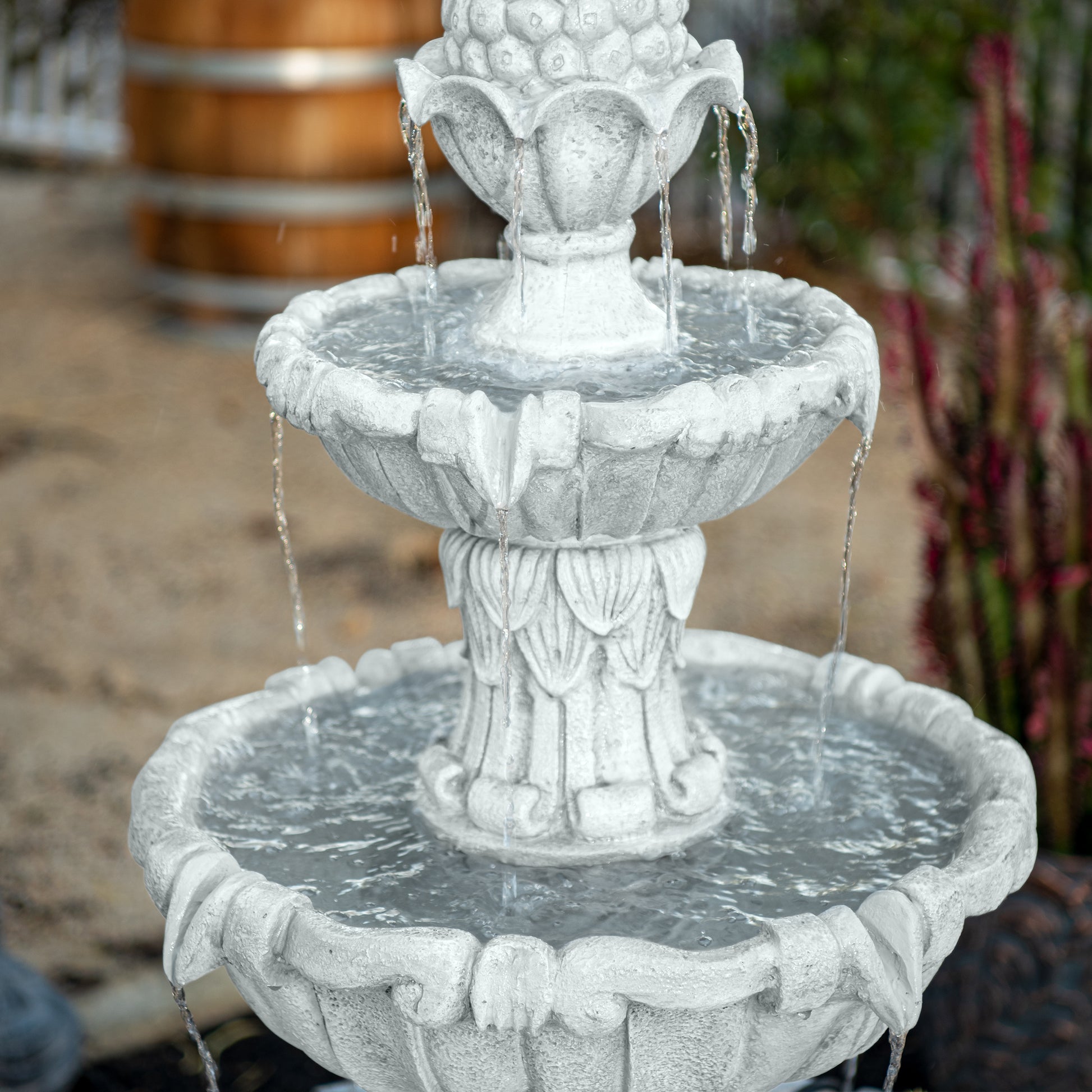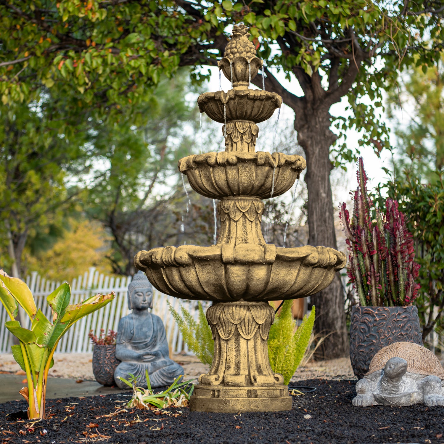 Soothing Three-Tier Design: Elegant cascading water creates a tranquil soundscape, perfect for relaxation.